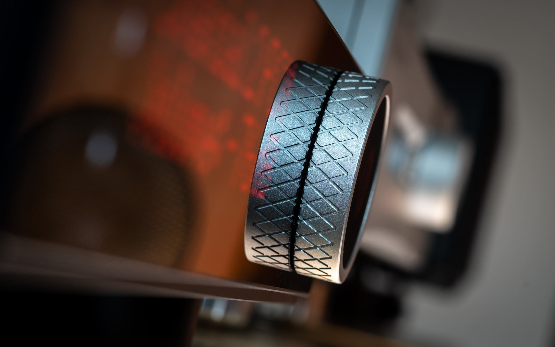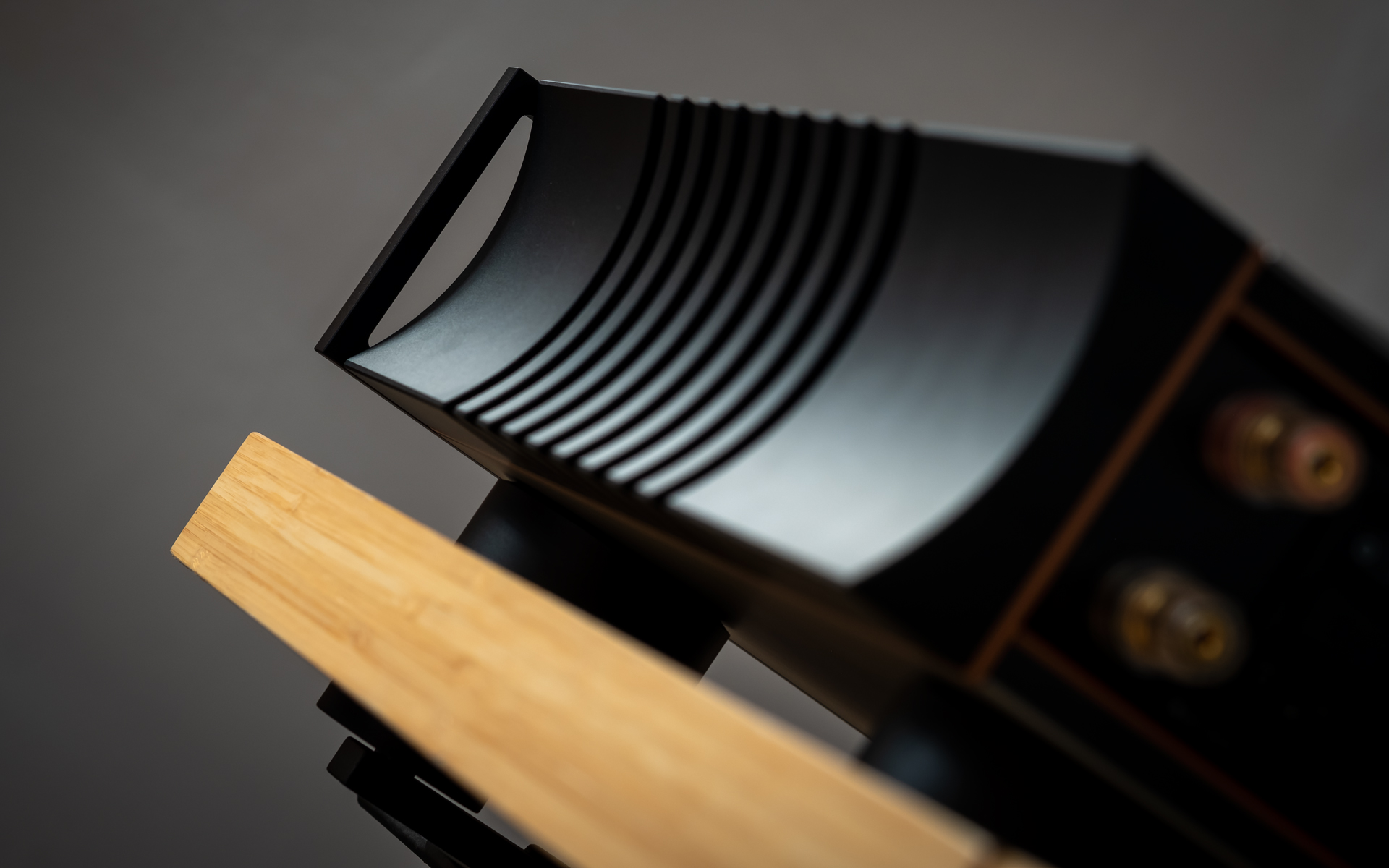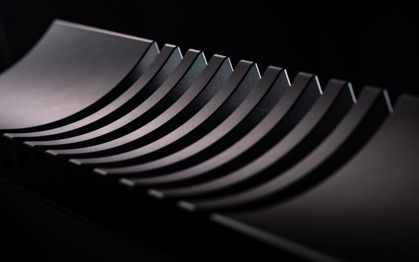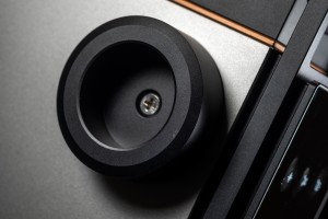 From the side the I-588 looks just as impressive as from the front. Its concave flanks contrast with the convex cheeks of the I-880, while inside they connect to heavy copper walls that form a shielded chamber to protect the circuitry from airborne noise. What used to be exclusive to Aavik’s most expensive models is now standard across the line, and here it’s paired with the company’s familiar thick wood-composite sandwich top and bottom panels to suppress vibration. Four round inserts on the top allow stacking with other Aavik components, either directly or via the optional Ansuz Darkz decouplers. The former connection requires a dozen ball bearings, the latter wants twice as many. The amp sits on four large footers designed to interface seamlessly with those pucks, hiding them almost entirely while still ensuring contact with a rack shelf. Around the back, the I-588 features solid but conventional speaker terminals, a fused IEC power inlet, trigger and software update ports, and a practical array of RCA connections; five line-level inputs, along with dedicated main input and separate high-pass (24dB/oct.), low-pass (12dB/oct.), and preamp outputs.