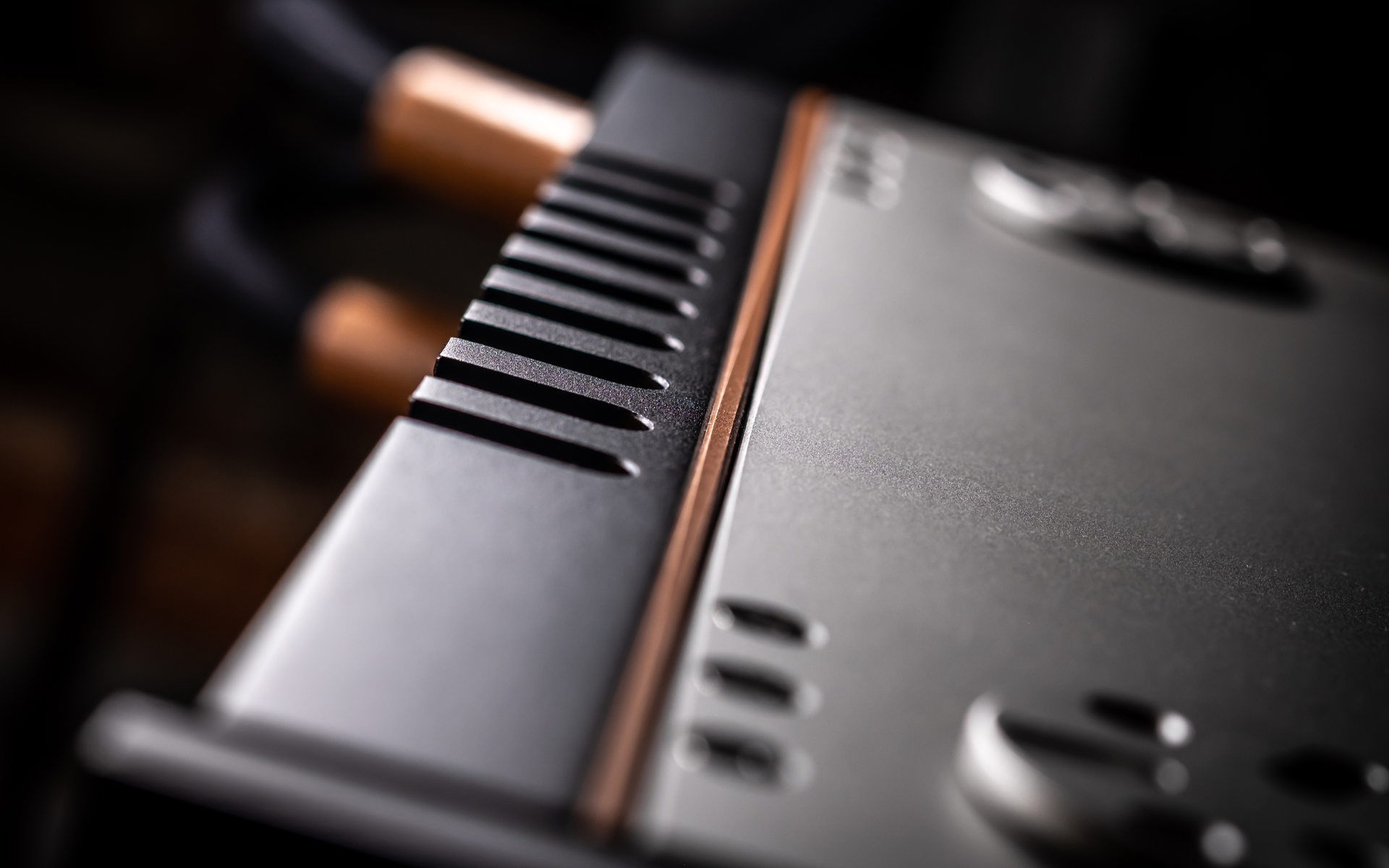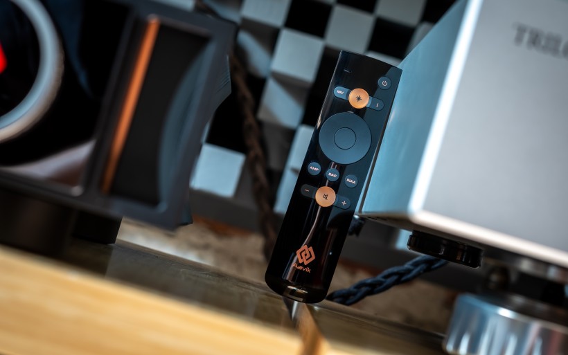 The I-588 arrived in a sturdy flight case with reinforced corners and locking latches, a reminder that Aavik treats shipping as seriously as the product itself. Inside, the amplifier was cushioned by thick foam inserts, with smaller compartments holding a manual, wool gloves and a remote-control wand finished with a detachable copper-colored backplate held in place by magnets. A single AAA cell powers this controller, which includes all the buttons one could need to operate the amp comfortably from the chair. At 440 x 430 x 116mm (W x D x H) and tipping the scales at 23.3kg, the I-588 is compact by high-end standards yet surprisingly hefty for its size. Behind its sleek exterior lies serious muscle: 300 watts per channel into 8Ω, doubling to 600 into 4Ω. With a damping factor hovering near 350, this is no polite lifestyle amp. It’s built to control challenging loudspeakers. Power comes from Pascal’s L-PRO2 UMAC Class-D module that’s stable as a rock, efficient and cool even under stress. Further specs list THD+N <0.0028% (1W, 1kHz, 8Ω), IMD/TIM below 0.0008%/0.002% (10W, 8Ω), 7.5Vrms max. output, line stage THD below 0.005% (1kHz, 1V) and standby/idle power draw respectively below 1/30W. Dead silence on idle and full readiness in about half a minute round out the technical résumé.