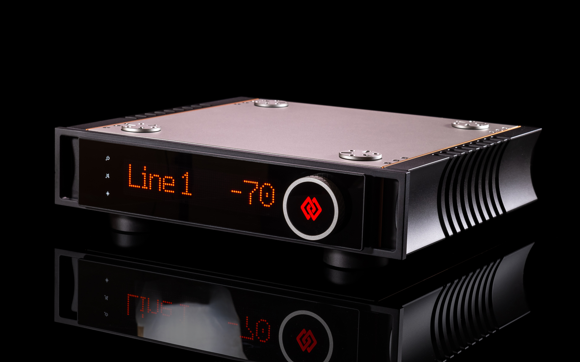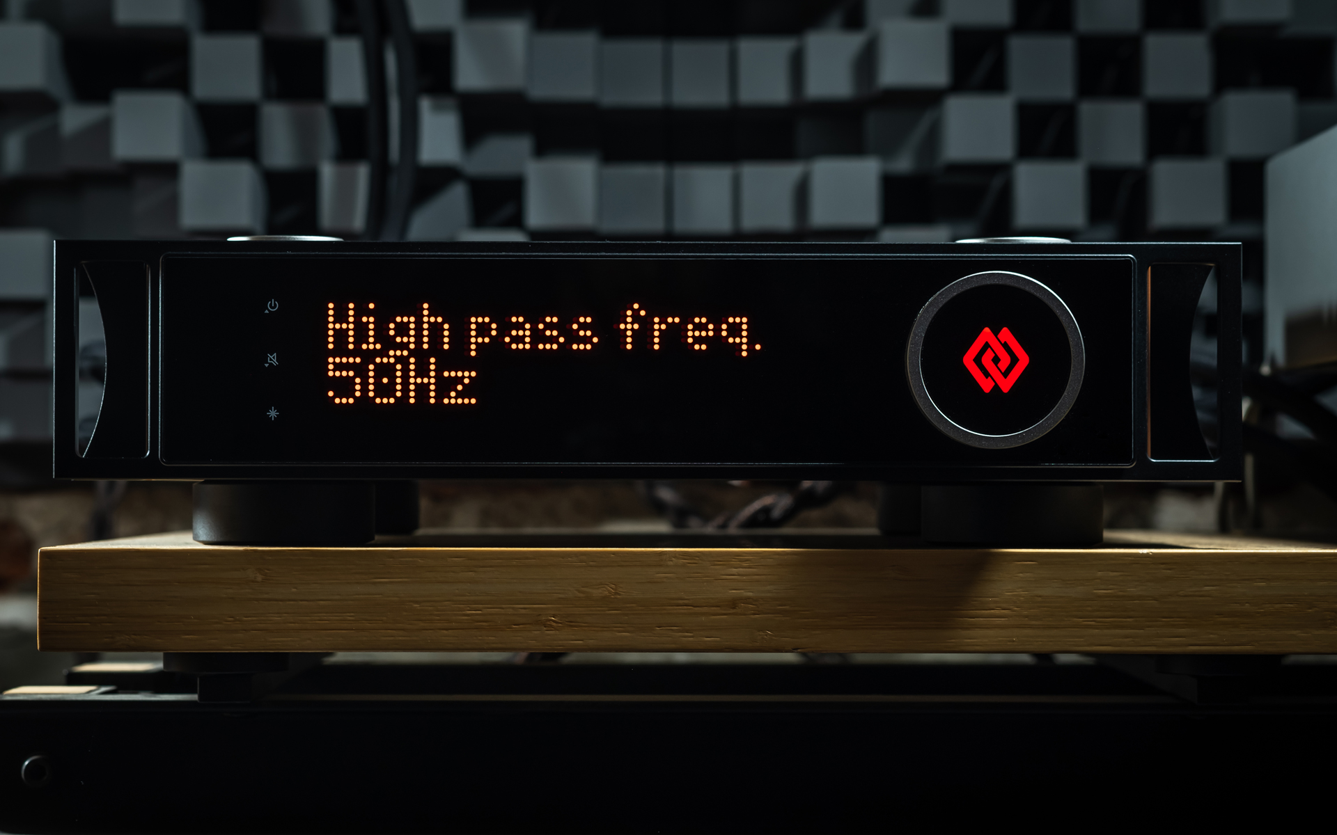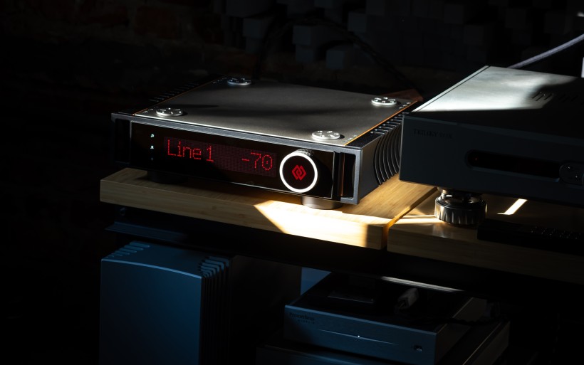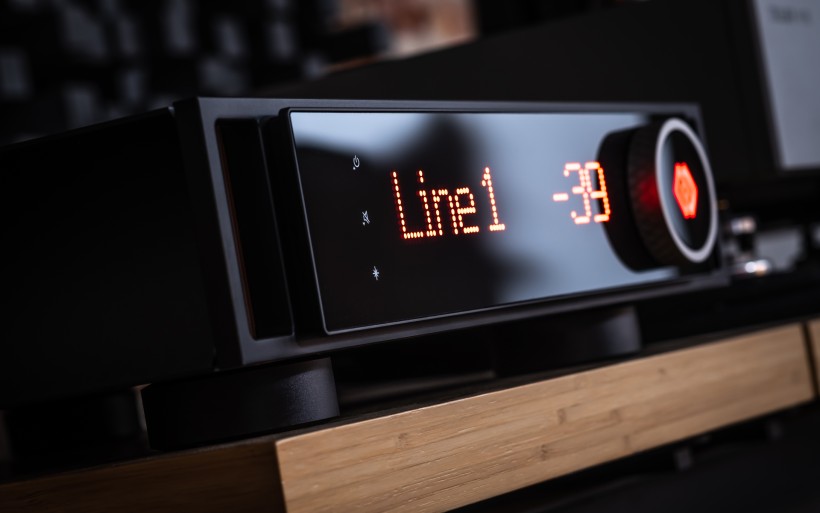 At Audio Group Denmark, aluminium is considered a poor choice for casings, while titanium, zirconium, copper and wood-based laminates are celebrated for their damping and shielding abilities. Although the I-588 isn’t as extravagant as the I-880, it still reflects that philosophy in full. Its forehead combines a robust steel panel with side handles, dominated by a large red dot-matrix display that’s easy to read across the room. On the right sits a beautifully machined knob with a titanium grip — endlessly rotating, perfectly weighted, and oddly addictive to use. That part of the I-588’s UI is as good as it gets. Three touch buttons integrated into the display handle standby on/off that also doubles as the arrow up, then there’s the mute/arrow down below it and input/menu selector on the bottom. The menu allows a user to set display brightness (10/40/70 and 100%), dim it, adjust channel balance (up to 6dB), monitor temperature, set the home theatre bypass input and its level (up to -20dB), check OS version, do a factory reset, separately set high/low-pass cut-off frequency (30-80Hz) and adjust low-pass level (+/-6dB in 0.25dB steps). I didn’t miss a single thing.