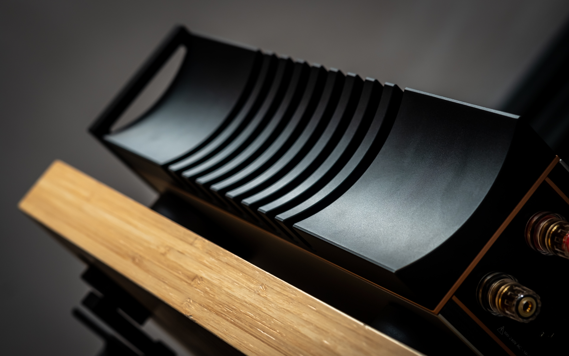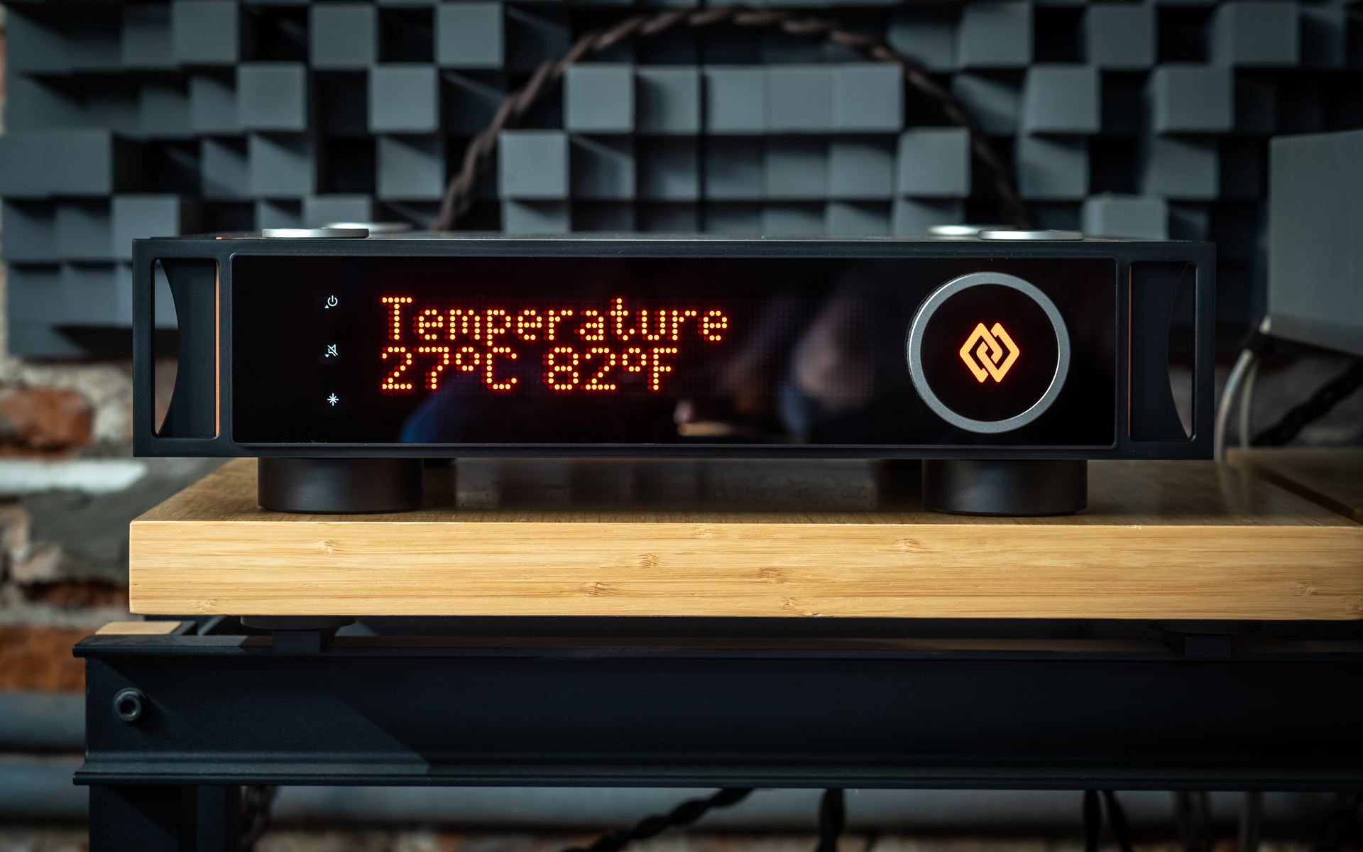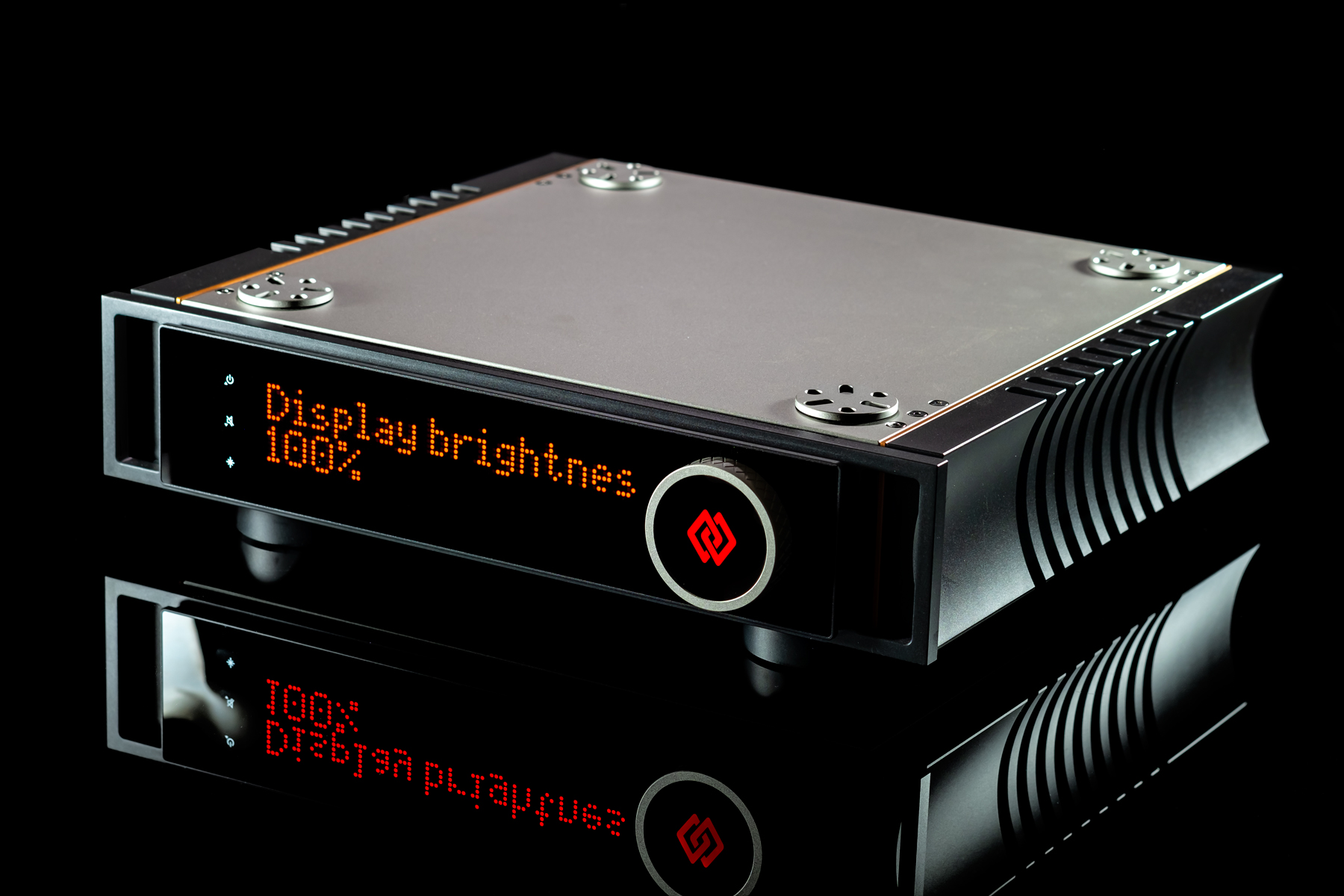 At Audio Group Denmark, aluminium is considered a poor choice for casings, while titanium, zirconium, copper and wood-based laminates are celebrated for their damping and shielding abilities. Although the I-588 isn’t as extravagant as the I-880, it still reflects that philosophy in full. Its forehead combines a robust steel panel with side handles, dominated by a large red dot-matrix display that’s easy to read across the room. On the right sits a beautifully machined knob with a titanium grip — endlessly rotating, perfectly weighted, and oddly addictive to use. That part of the I-588’s UI is as good as it gets. Three touch buttons integrated into the display handle standby on/off that also doubles as the arrow up, then there’s the mute/arrow down below it and input/menu selector on the bottom. The menu allows a user to set display brightness (10/40/70 and 100%), dim it, adjust channel balance (up to 6dB), monitor temperature, set the home theatre bypass input and its level (up to -20dB), check OS version, do a factory reset, separately set high/low-pass cut-off frequency (30-80Hz) and adjust low-pass level (+/-6dB in 0.25dB steps). I didn’t miss a single thing.