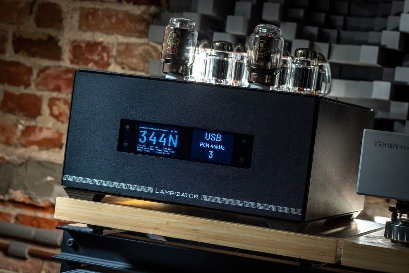 LampizatOr’s sales director, Piotr, was the Santa who clearly needed my assistance. His “gift” arrived in a flight case tipping the scales at 80kg — large enough to fit a pair of speakers inside. Though equipped with side handles and two small wheels, this was unmistakably a two-person job. Inside, dense foam liners secured the main component, while a smaller compartment on the side housed two KR Audio 5U4G rectifiers, a remote control, QC sheet, certificate of authenticity and twin KT88 quads from KR Audio and Psvane’s premium ACME line. Yes, that’s ten vacuum tubes in total and all are necessary. The custom-made remote was easily the largest and heaviest I’ve ever handled. CNC-milled from solid aluminium billet, it featured optionally backlit buttons for muting playback, powering the device on and off, dimming the display, selecting digital inputs, reversing phase, accessing settings, and cycling through filters and modulators. Łukasz clearly went the extra mile here — and succeeded. That said, operating this one-kilogram brick requires both hands, not only because of its heft but also because certain functions demand pressing two buttons simultaneously. All in all, it’s a beautifully executed, luxurious remote — just an unapologetically massive one.