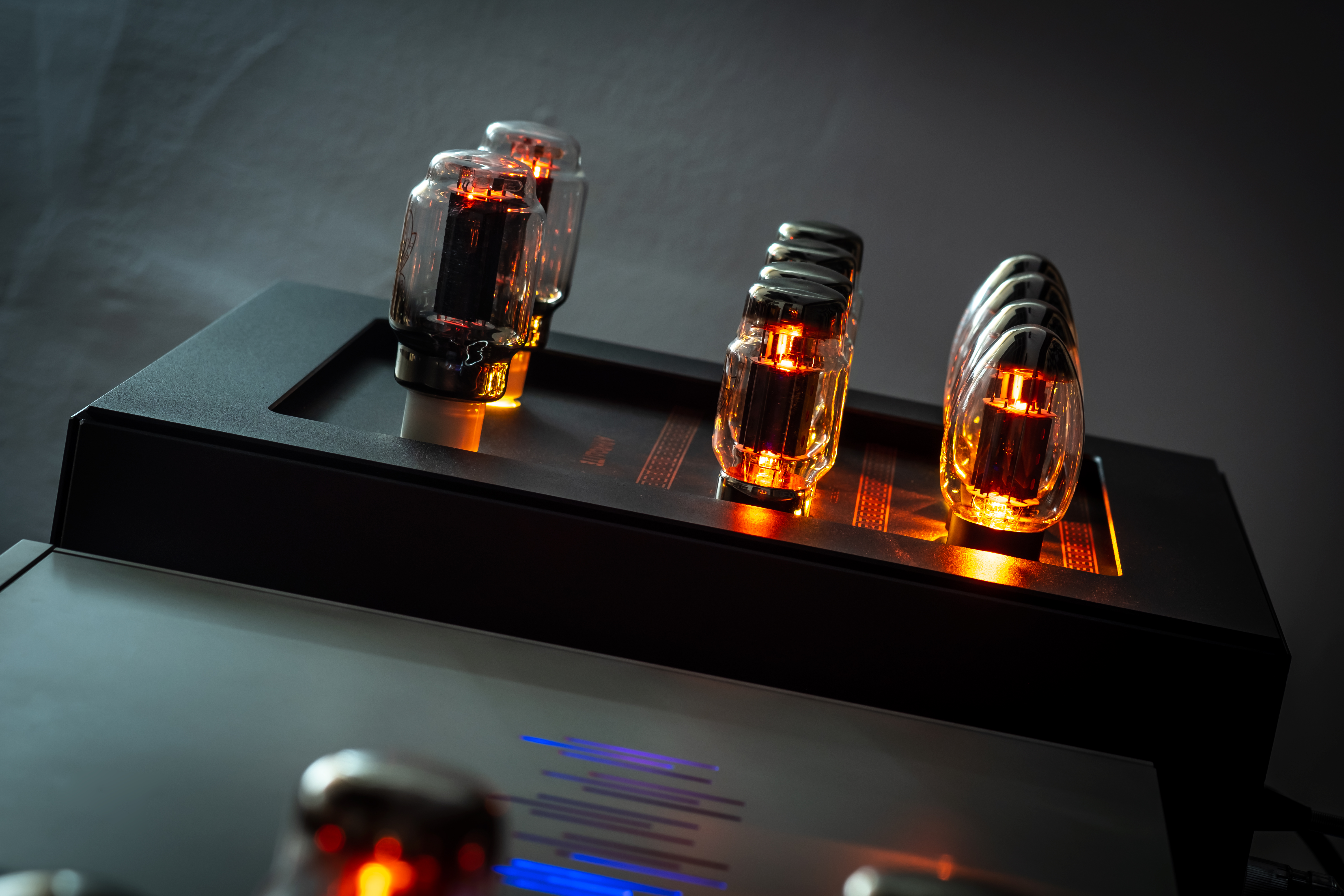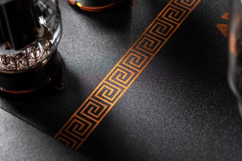 At first glance, the Aphrodite might appear to be a higher-tier evolution of the Horizon360 platform, and to some extent, that’s true. The newcomer sports a distinctly Horizon-inspired enclosure whose build quality easily rivals the industry’s finest. The design language established by the first-generation Horizon remains instantly recognizable — visually striking, purposeful, and full of character. Utilitarian yet elegant, industrial yet refined, robust and clearly substantial, with its exposed tubes proudly on display, it embodies everything I personally enjoy having on my rack. The Aphrodite’s housing is built around an internal skeletal frame clad in thick, solid panels that are bolted to it from within. The uniformly deep gaps that outline the entire structure make the exterior look both clever and intriguingly intricate. Without knowing how it’s assembled, one might wonder how those panels hold together without visible fasteners. They do — because this DAC is built like a tank. Tight tolerances and the absence of any visible screws give it an exceptionally clean, cohesive appearance that radiates precision craftsmanship. While the Aphrodite comes exclusively in matte black, its concaved top plate with openings for the tubes can be customized in several finishes: matte black, engraved black copper, real copper, or a “faux” copper coat.