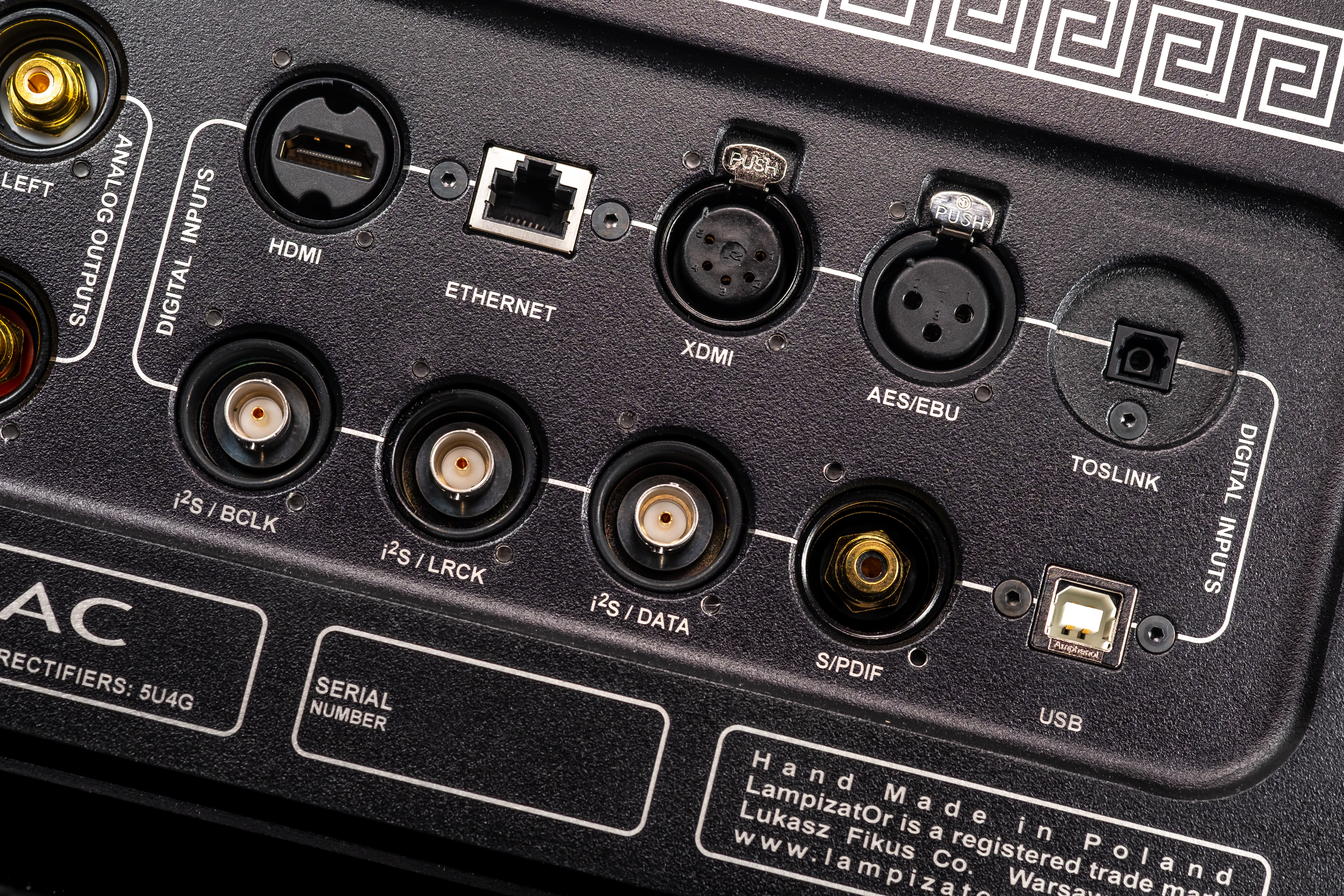 On the back, the Aphrodite features a fused Furutech IEC inlet positioned next to a grounding terminal, along with analog RCA and dual XLR outputs. The digital input section located further to the right combines the usual USB, AES/EBU, and coaxial/optical SPDIF with Taiko’s proprietary XDMI on a 5-pin XLR, I²S on HDMI (PS Audio pinout), RJ45 (based on Logitech SlimDevices Squeeze) and a second I²S on three BNC connectors that does not require a master clock. The LAN input is handled by a tiny computer inside the Aphrodite that runs its own software and outputs I²S data directly to the DAC chip. This feature essentially turns the DAC into a network endpoint capable of communicating with a streamer from another room, though that’s not its primary purpose. Łukasz explained that he and most of his team consider the Aphrodite’s RJ45 input as audibly better than most other digital connections this machine features. With all that out of the way, we can move onto sonics.