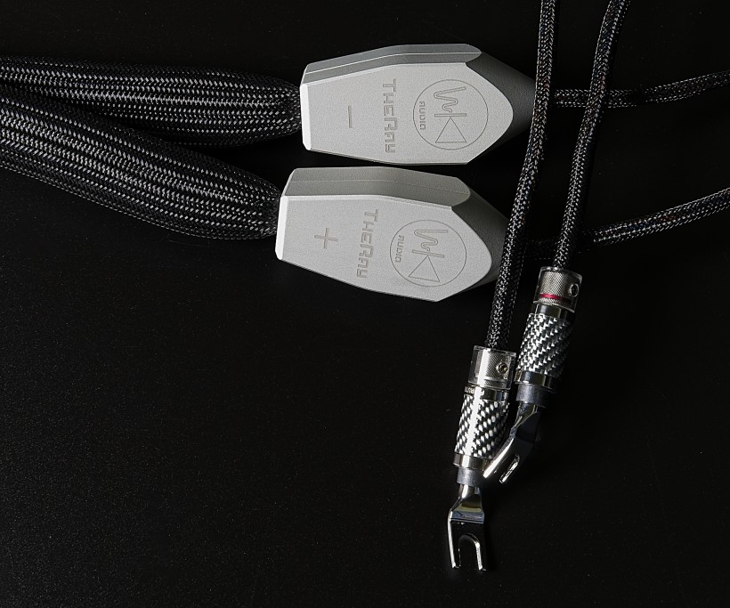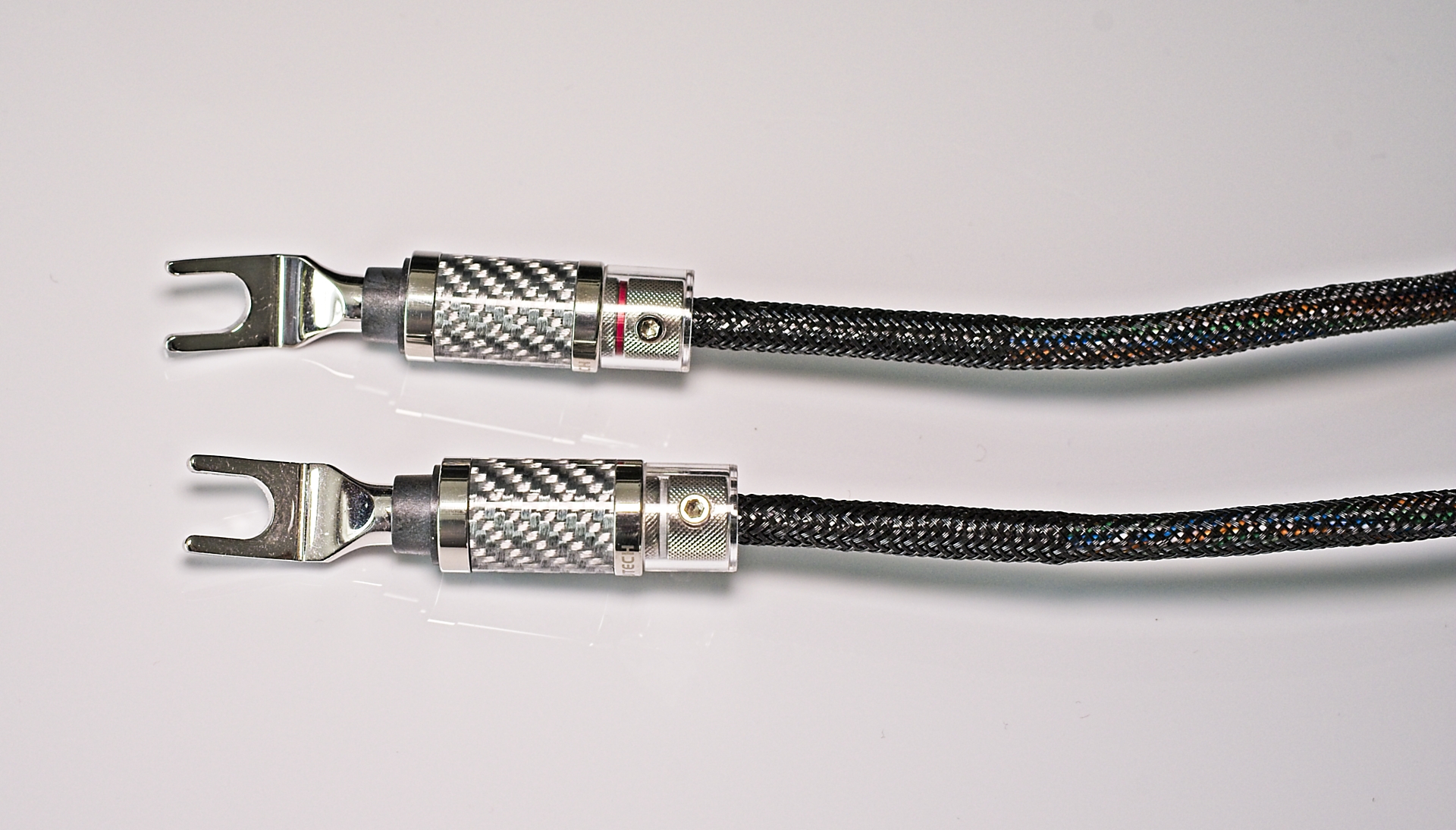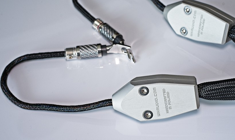 WK AUDIO TheRAY SC (speaker cables), as I mentioned, are part of the mid-range series of cables offered by the brand. It is available in two versions: Exclusive, with top-of-the-line CF-201R NCF spades (if the buyer opts for bananas, CF-202R NCF are used), and Basic, with slightly cheaper Furutech FP-201R spades. The Exclusive version of the cable also comes in an elegant wooden box, which is not included in the cheaper option.