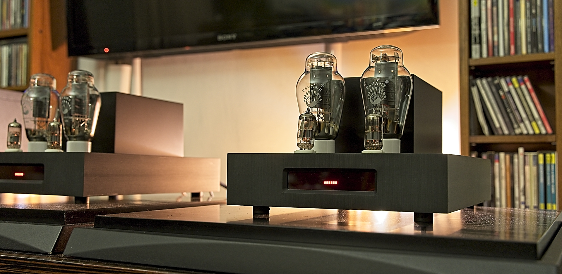 On top of the latter, there are four tubes that sit in Teflon sockets with gold-plated contacts. The pair in front are two NOS double triodes, E88CC (used as an input buffer) and ECC83 (as a driver for the output tubes). The two behind are 300B output tubes operating in the PSE mode, sourced from the PSVANE basic line. When asked about it, Mr. Waszczyszyn gave me the same answer as most designers of tube amplifiers, including Mr. Ashizawa from Kondo, which is that he offers his amplifiers with basic, reliable, easy-to-replace tubes. Still, users of his amplifiers are welcome to try out other 300B (or input) triodes as they please if they feel the need to push the performance even further.